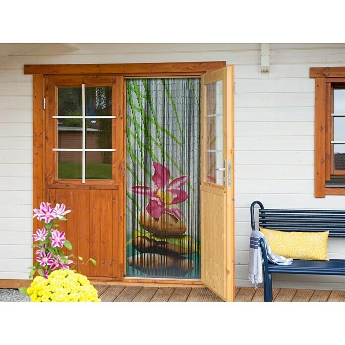 Der Conacord Perlenvorhang Stone verleiht den eigenen vier Wänden ein schönes und entspanntes Ambiente. Die eingesetzten, abschwaschbaren Perlen sind farblich so handbemalt, dass ein Bild von Steinen, umsäumt von Blüten und Blättern, entsteht. Gleichzeitig bietet der Vorhang einen Blickschutz sowie einen Insekten- und Fliegenschutz und die einzelnen Stränge finden nach Betreten des Raums wieder elegant schwingend zueinander. Dieser Dekovorhang ist an einer Holzleiste befestigt, die sich mit zwei Ösen an der Wand oder dem (Tür-)Rahmen befestigen lässt.