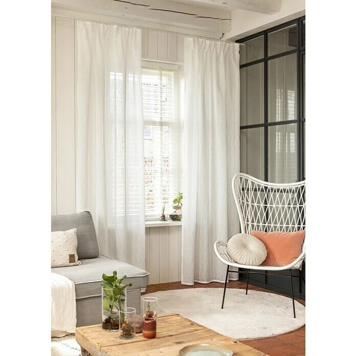 Der Elbersdrucke Schlaufenbandschal Home Time wurde in der besonderen Jacquard-Webtechnik hergestellt. Webmaschinen machen aus einzelnen Fäden ein Kunstwerk für jedes Fenster. Der Jacquard-Vorhang Hometime zeigt wie toll Stoffe aussehen die auf jeglichen Schnick Schnack verzichten. Eine besondere Webtechnik, in dem einfarbigen Vorhang, bringt ein Wellenmuster zum Vorschein und gibt jeglicher Einrichtung den nötigen Schwung. Fix und Fertig zum Aufhängen: Vorhang mit verdeckten Schlaufen und Kräuselband. Schlaufen = für die Gardinenstange, Kräuselband = für die Gardinenschiene. Inklusive Bügelband zum individuellen Kürzen!