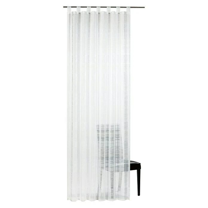 Der Schlaufenschal Filou ist eine Fertigdekoration mit Schlaufen und Kräuselband. Das Gewebe ist pflegeleicht und besteht aus 100 % Polyester. Der Schlaufenschal ist halbtransparent und kann sowohl als Gardine, als auch als Dekoschal verwendet werden. Farbgebung und Musterung sind neutral gehalten und überzeugen in trendgerechter Ausführung. Sie betonen eine gemütliche, textile Einrichtung und werden jede kahle Fensterfront optisch überzeugend auf. Durch das Kräuselband lässt sich die Breite individuell zusammenraffen und mit einer Gardinenschiene montieren. Die aufgenähten Schlaufen ermöglichen eine leichte Aufhängung auf allen gängigen Gardinenstangen. Somit ist diese Fertigdekoration äußerst flexibel einsetzbar und bietet viele Kombinationsmöglichkeiten mit anderen Wohnaccessoires wie beispielsweise Kissen, Plissées oder Teppichen.