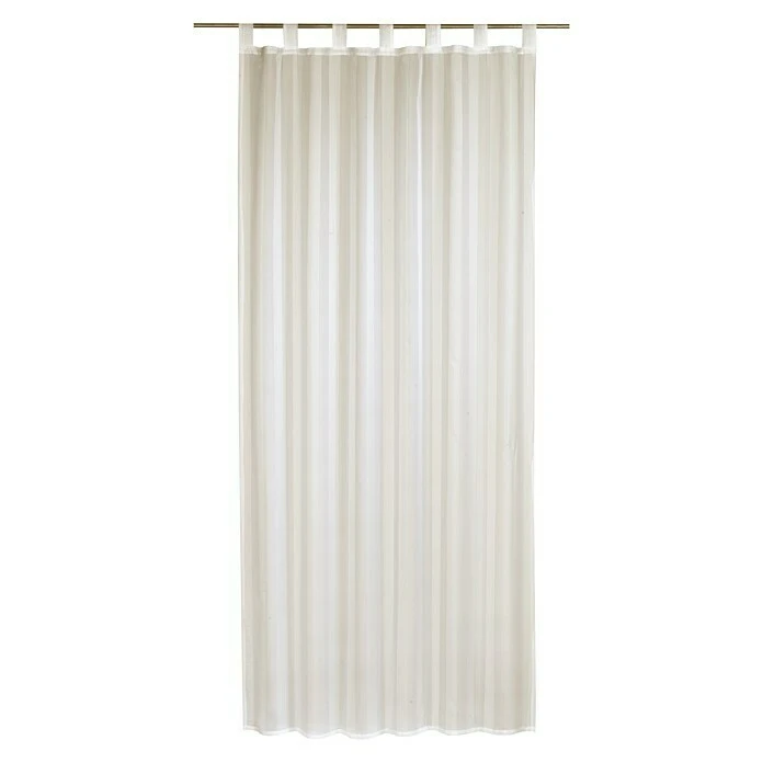 Der Schlaufenschal Streifenvoile ist eine Fertigdekoration, die mit eingewebten Längsstreifen besondere Akzente setzt. Der Stoff besteht aus 100 % Polyester und ist pflegeleicht. Die Schlaufengardine ist ein transparenter Voile, der durch seine weichfließende Qualität überzeugt.