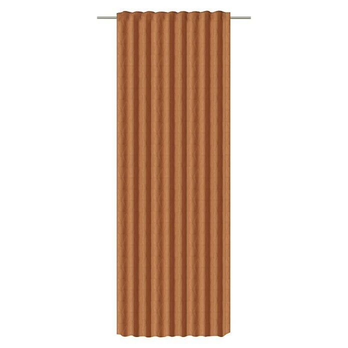 Der blickdichte Elbersdrucke Vorhang Sunny verschafft Ihrem Raum eine warme Atmosphäre. Der rostfarbene Jacquard-Stoff im Rautendesign, lässt den Ethno-Look in Ihre vier Wände einziehen! Fix und Fertig zum Aufhängen: Vorhang mit verdeckten Schlaufen und Bleistiftfaltenband, inklusive Bügelband zum individuellen Kürzen.