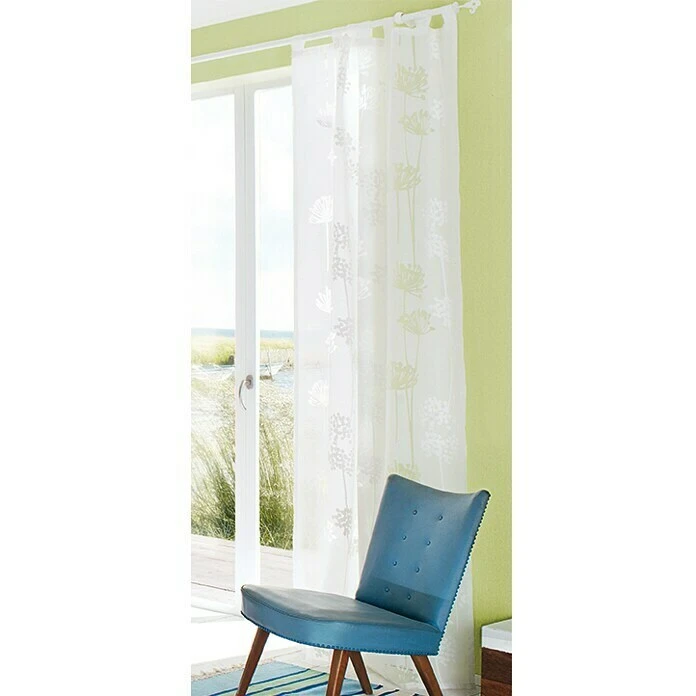 Der Schlaufenschal Sweet Love Flower verzaubert mit einem zartem Dessin von stilisierten Pusteblumen. Der halbtransparente Vorhang aus feiner, weich fließender Qualität, wurde im aufwändigen Ausbrenner-Verfahren gemustert und bedruckt. Er ist mit Schlaufen für die Gardinenstange und Universalband für die Gardinenschiene ausgestattet. Auch ein Bügelband wird zwecks individueller Kürzung mitgeliefert. Der Schlaufenschal besteht aus einem Mischgewebe mit 70 % Baumwolle und 30 % Polyester.