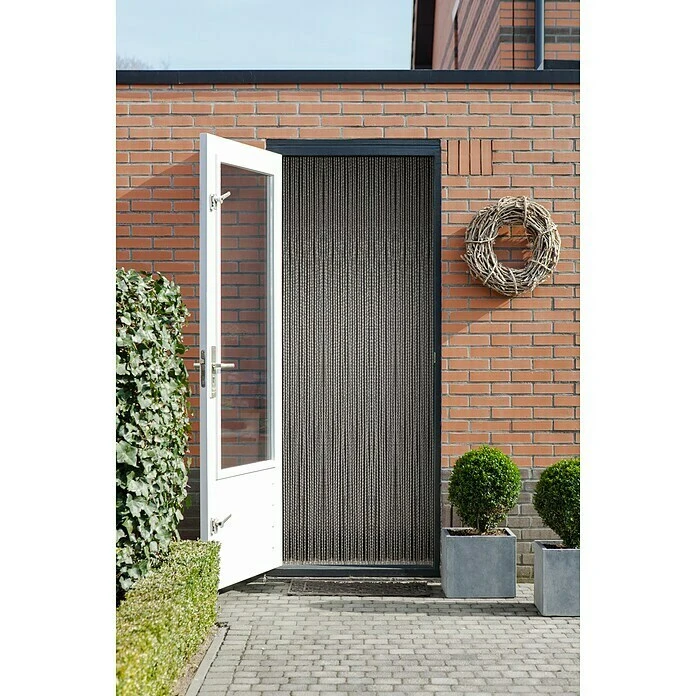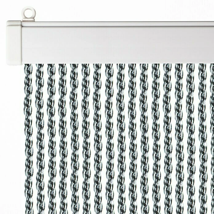 Die Stränge des Türvorhanges Alcampo sind in einer schlichten schwarz-transparent Kombination gehalten. Die verschlungenen Glieder haben eine elegante, kettenähnliche Optik. Neben dem ansprechenden Design ist er zudem ein effektiver Insektenschutz. Mit der einfach zu befestigenden Halterung, kann die Leiste ohne Schwierigkeiten mit Haken montiert werden.