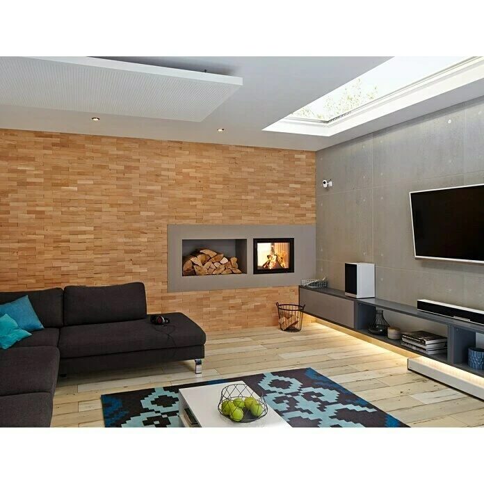 Die Wodewa Echtholzriemchen in Eiche gebürstet bieten jede Menge Möglichkeiten für die individuelle Innenraumgestaltung mit Holz. Mit der 3D-Holzdekoration gelingt es schnell und einfach Zimmerwände zu gestalten. Die Anwendung ist sowohl für große Flächen als auch kleine Akzente geeignet. Das Anbringen der Massivholzwandverkleidung ist auf allen tragfähigen, glatten und festen Untergründen möglich. Eine optimale Tiefenimprägnierung durch modernste Fertigungstechnik mit mehrmaligem Auftrag gewährleistet einen zuverlässigen Oberflächenschutz vor Feuchtigkeit und Verschmutzung. Die Wodewa Holzwandverkleidung kann mit einem weichen feuchten Tuch, einem Staubwedel oder durch Absaugen einfach gereinigt werden. Dank der drei verschiedenen Materialstärken entsteht eine außergewöhnliche 3D-Optik. Die freie Verlegung garantiert ein Unikat als Fläche. Natürliche Wuchsmerkmale und Farbabweichungen sind ein Beweis dafür, dass es sich um echtes Holz handelt.